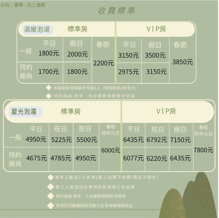 ※最多可進四人,每間提供2組毛巾,若需毛巾另酌收費用。
